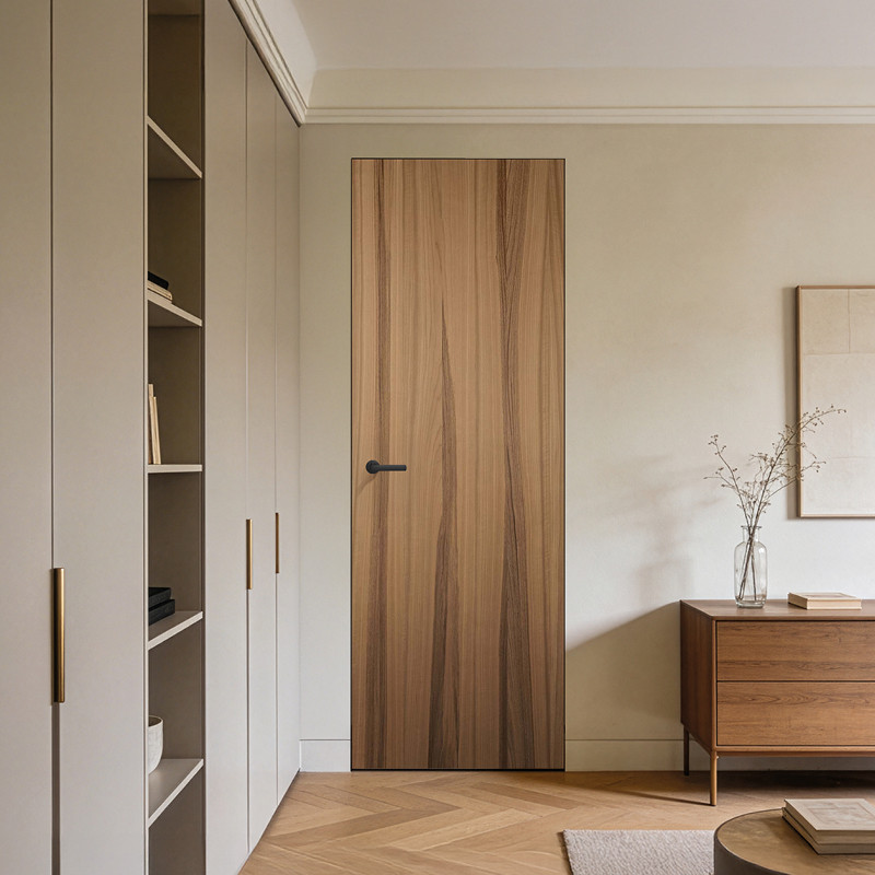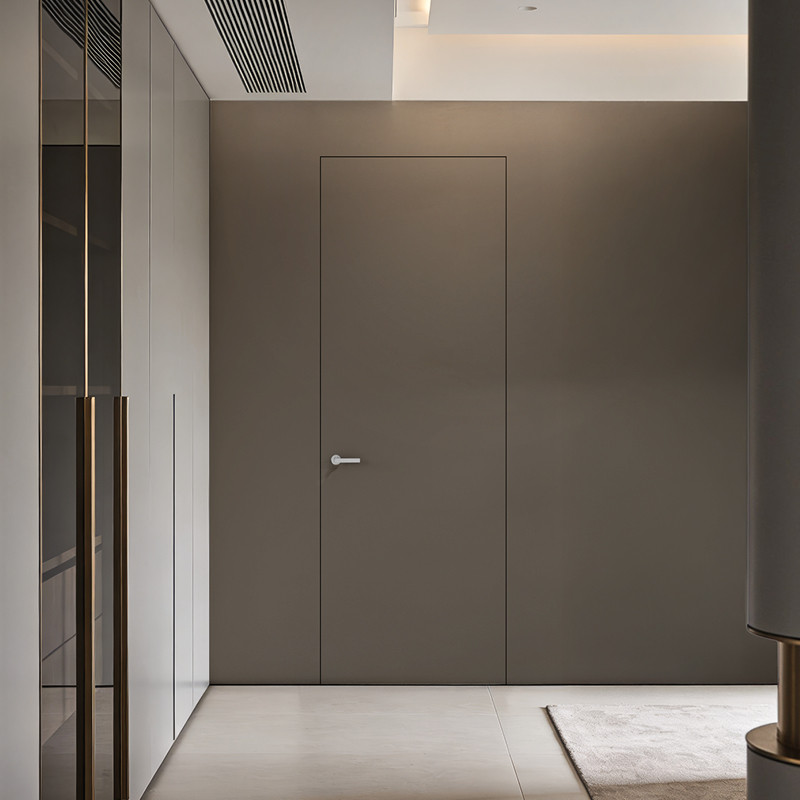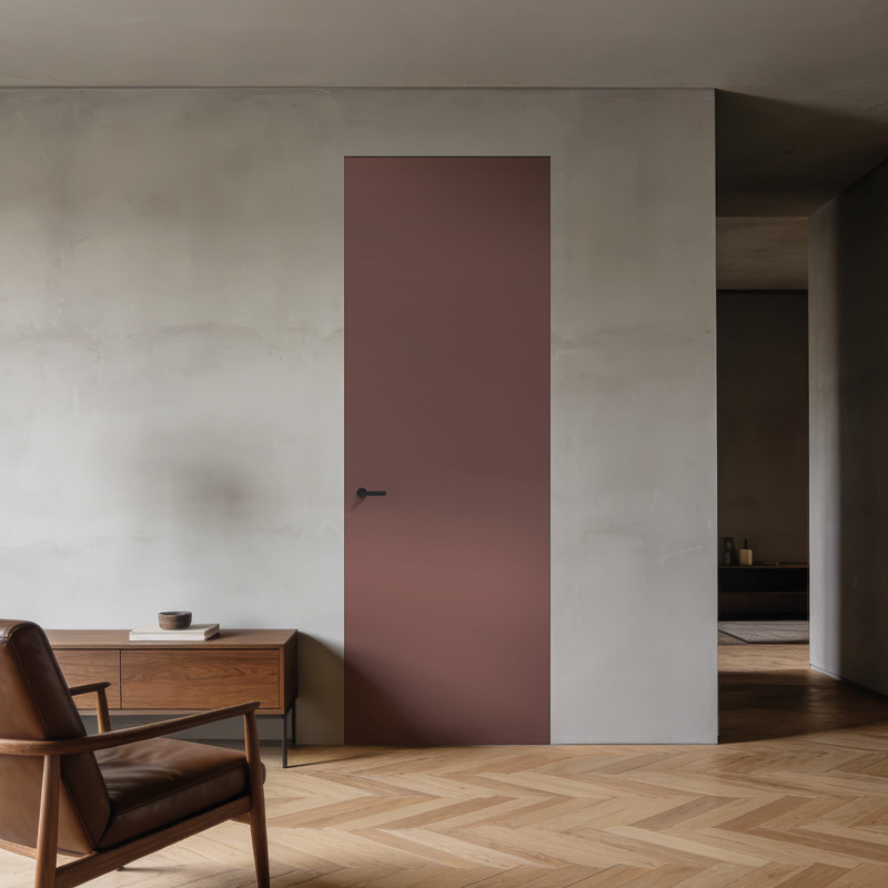 La porte battante invisible n’a pas de couvre-joints, elle est à fleur du mur pour disparaitre totalement si elle est en version à peindre. Le cadre est en aluminium et conçu pour être enduit et peint comme les murs. Une tapisserie ou un enduit décoratif pourront aussi être appliqués sur la porte pour laisser libre choix à votre imagination.